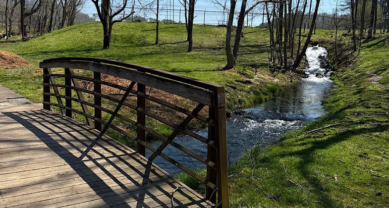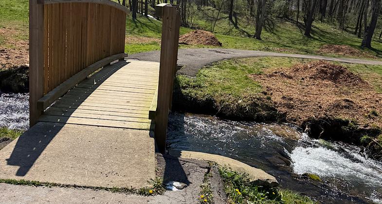 Nice paved loop trail by the campground. Entrance is by campsite #35. Trail goes through trees and over a few small bridges. Saw some folks fishing. Campground itself looks like a nice place to stay with plenty of amenities.