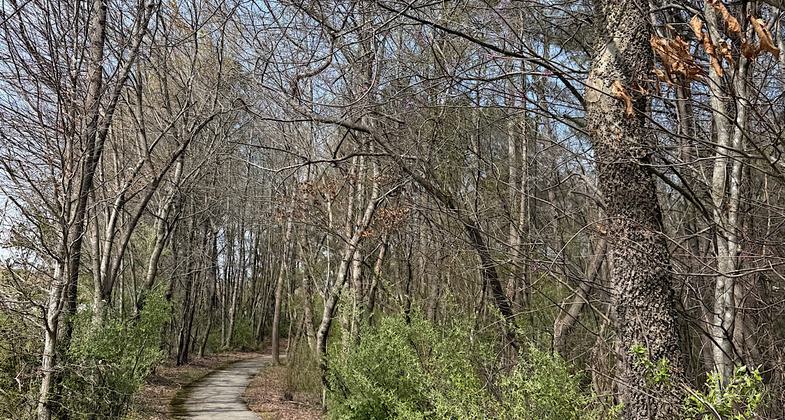 This is a short paved loop trail through some trees at the day-use area of Watts Bar Dam. The parking area is the first one to your right as you enter the area (before you reach the larger parking lot for the water and playground). The trail needs some maintenance as the pavement is cracked in places and there are plant debris and a small tree across the trail. Easy to step over if you are walking, but the trail is billed as wheelchair-accessible, so some clean-up and perhaps smoothing out the pavement here and there is needed. March 20, 2026